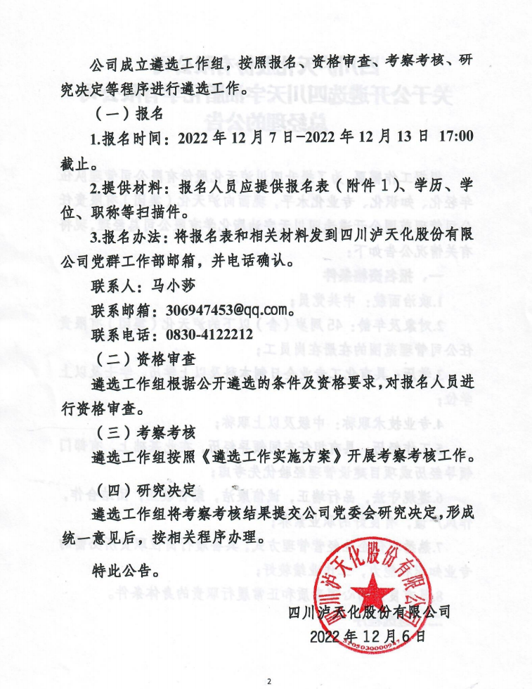招聘單位:四川瀘天化股份有限公司
